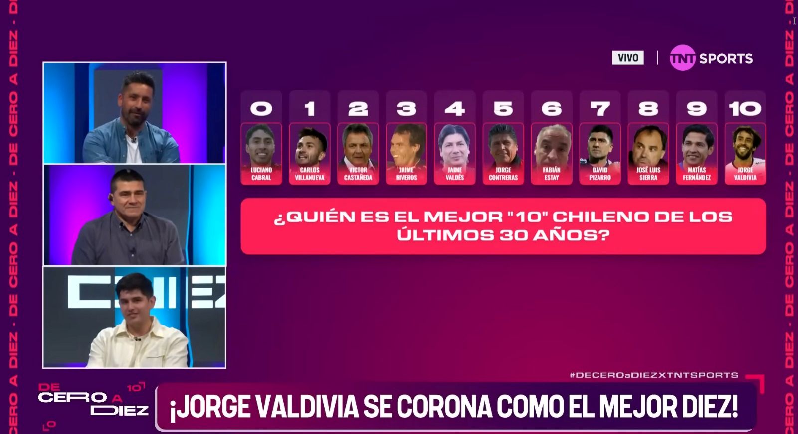Este martes se estrenó un nuevo capítulo de “De Cero a Diez”, donde el panel integrado por Marcelo “Toby” Vega, Arturo Millán y Cristian Basaure, abordó una nueva y controvertida interrogante: ¿Quién es el mejor “10” chileno de los últimos 30 años?