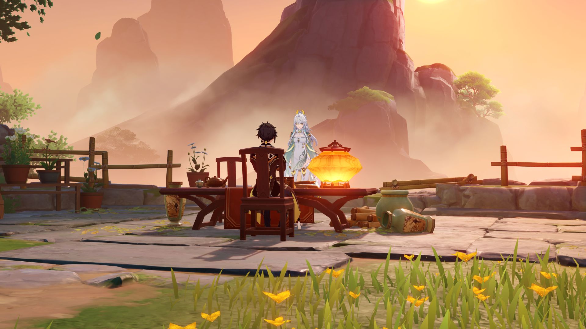 Volviendo a Liyue, el Rito de la Linterna regresa con una gran variedad de actividades, recompensas generosas e historias de Adeptus. Este año, la historia coincide con el presagio celestial de Zhanzhu, el Devorador de la Luna, y revelará cómo Zibai, la Adeptus Yegua Blanca, que ha vivido en reclusión durante tanto tiempo, vuelve a adentrarse en el mundo mortal. Durante la celebración, los jugadores podrán colocar linternas celestes especiales por toda la ciudad de Liyue, escribir deseos en ellas y compartirlos con otros jugadores. Además, podrán obtener monedas auspiciosas de los árboles de la fortuna para canjearlas por regalos especiales y disfrutar de una gran variedad de minijuegos llenos de espíritu festivo.