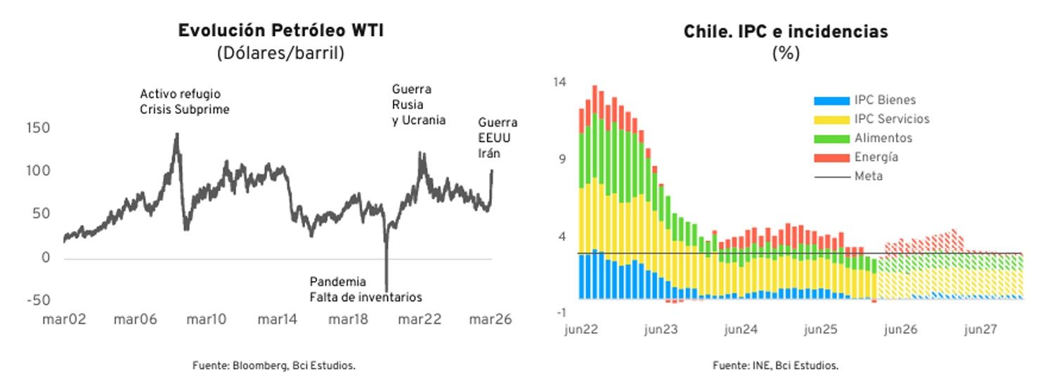 Según sus proyecciones, la inflación mensual de abril podría llegar a 1,6%, cerrando el año en torno al 4,0%. Si el conflicto se extiende o genera efectos de segunda vuelta, la cifra podría acercarse al 4,5%, con tasas de interés elevadas por más tiempo y menor dinamismo económico.
