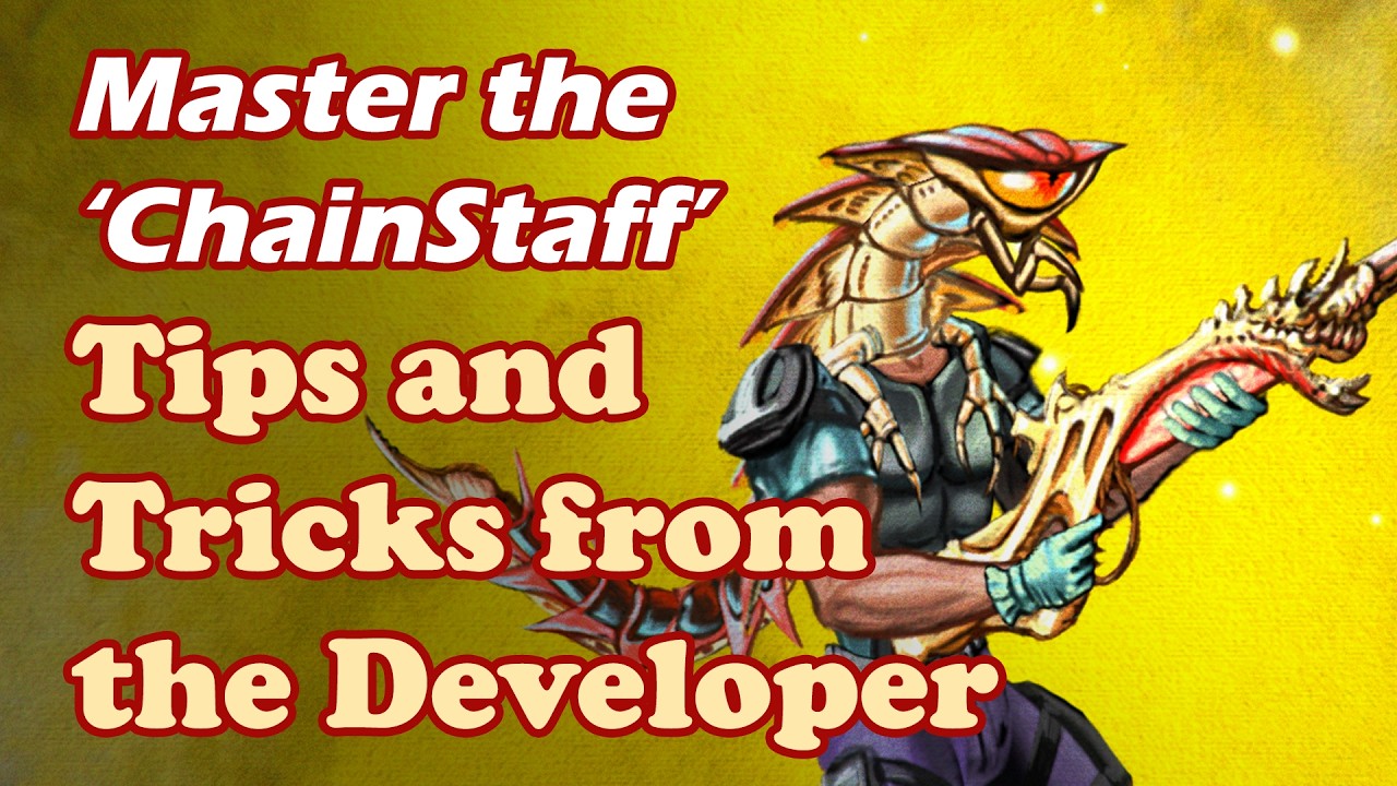"Hola a todos los amantes de las emociones fuertes: mi próximo juego cuenta con un arma tan singular que quería daros una ventaja antes de que empiece la acción. El ChainStaff es un arma verdaderamente versátil y se controla prácticamente con un solo botón. No hay menús contextuales que seleccionar, no hay ningún botón para «construir el puente»; siempre se trata solo del ChainStaff y de vuestra propia mente e ingenio. En este vídeo de consejos y trucos quería daros algunos ejemplos de cómo podéis usar el ChainStaff, el 8 de abril, cuando el juego salga a la venta en todas las plataformas, para luchar contra todos los alienígenas enloquecidos que los malvados Star Spores han creado al invadirnos". — Nathan Fouts, director y diseñador del juego.