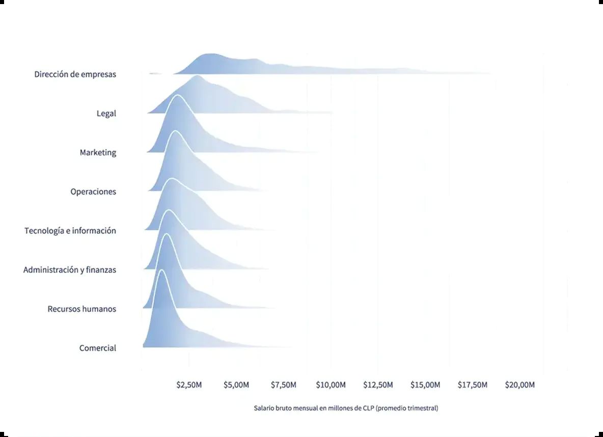 Las diferencias al interior de un mismo cargo también son relevantes: por ejemplo, en el área Comercial, la guía reporta 28 cargos distintos, desde vendedores de mostrador (con sueldos desde $688.000) hasta gerentes de negocios que pueden superar los $7 millones mensuales, dependiendo del tamaño de la empresa y el sector.
