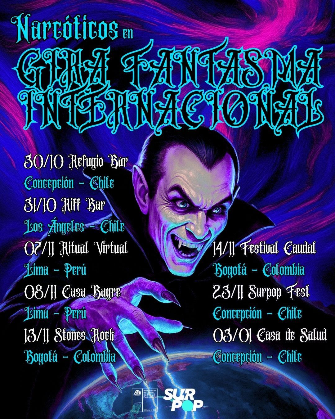 Consolidándose como una de las agrupaciones más interesantes del circuito neo gótico latinoamericano, Narcóticos anuncia su gira por Perú, Colombia y Chile, con motivo del lanzamiento de su nuevo single 'El hijo pródigo de la oscuridad' estrenada en Halloween a través de Bandcamp.