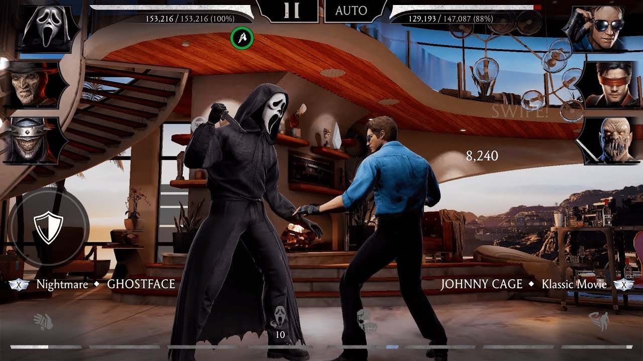 Nightmare Ghostface, el terror de Woodsboro, se abre paso en Mortal Kombat Mobile el 15 de octubre como un poderoso Personaje Diamond y el próximo miembro del equipo Nightmare. Los jugadores podrán intercambiar a un compañero Ghostface en medio de la pelea usando un botón único de Ataque Extra y construir acumulaciones de Ghostspirit para activar el Manic Mode. Cuando los aliados estén al borde de la derrota, Ghostface puede atacar con su habilidad Death Save, que se activa hasta tres veces en un equipo Nightmare completo.