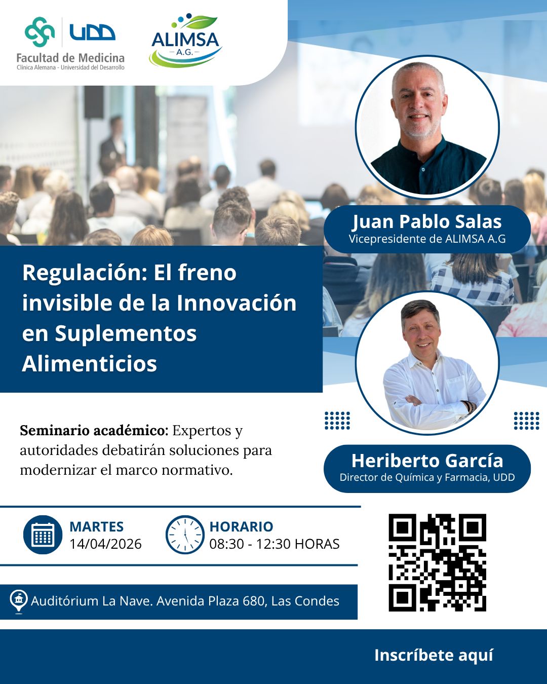 La actividad es organizada por la Facultad de Medicina Clínica Alemana de la Universidad del Desarrollo, en conjunto con la Asociación Chilena de Productores e Importadores de Alimentos y Suplementos Saludables (ALIMSA A.G.), y contará con la participación de Heriberto García Escorza y Gerardo Sánchez.